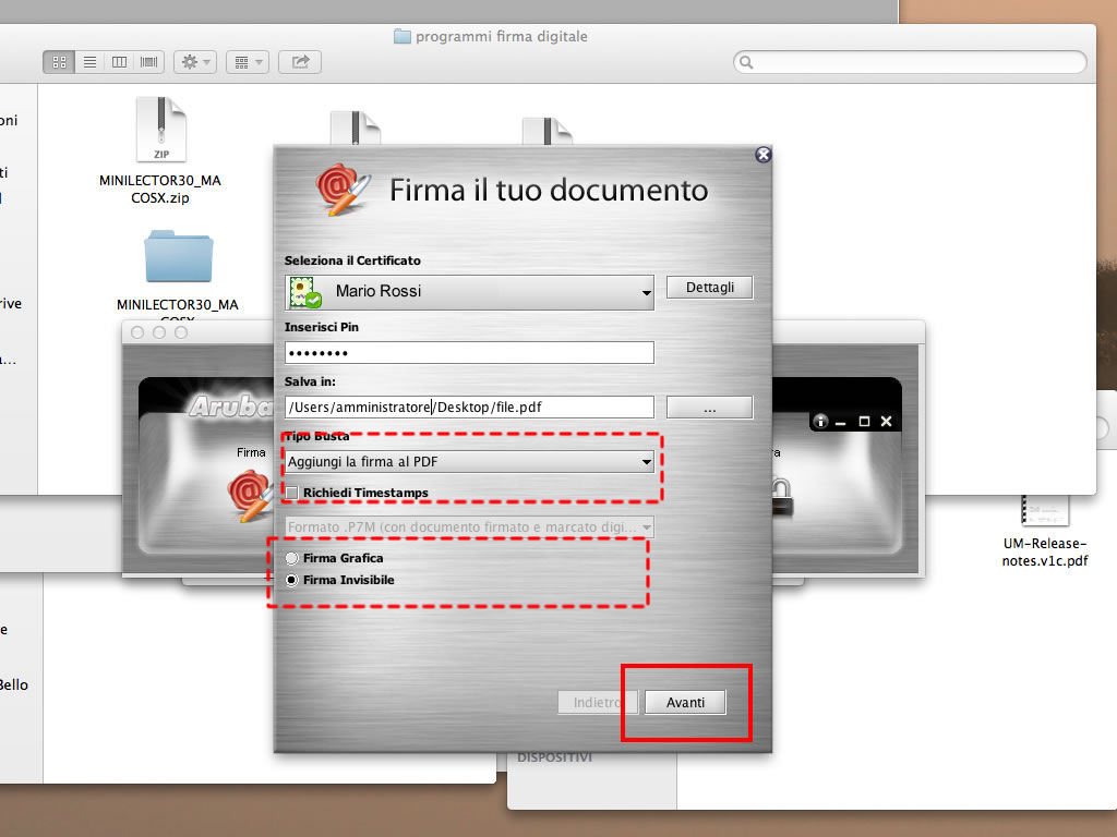Nelle opzioni successive scegliamo "Firma Invisibile", e proseguiamo.