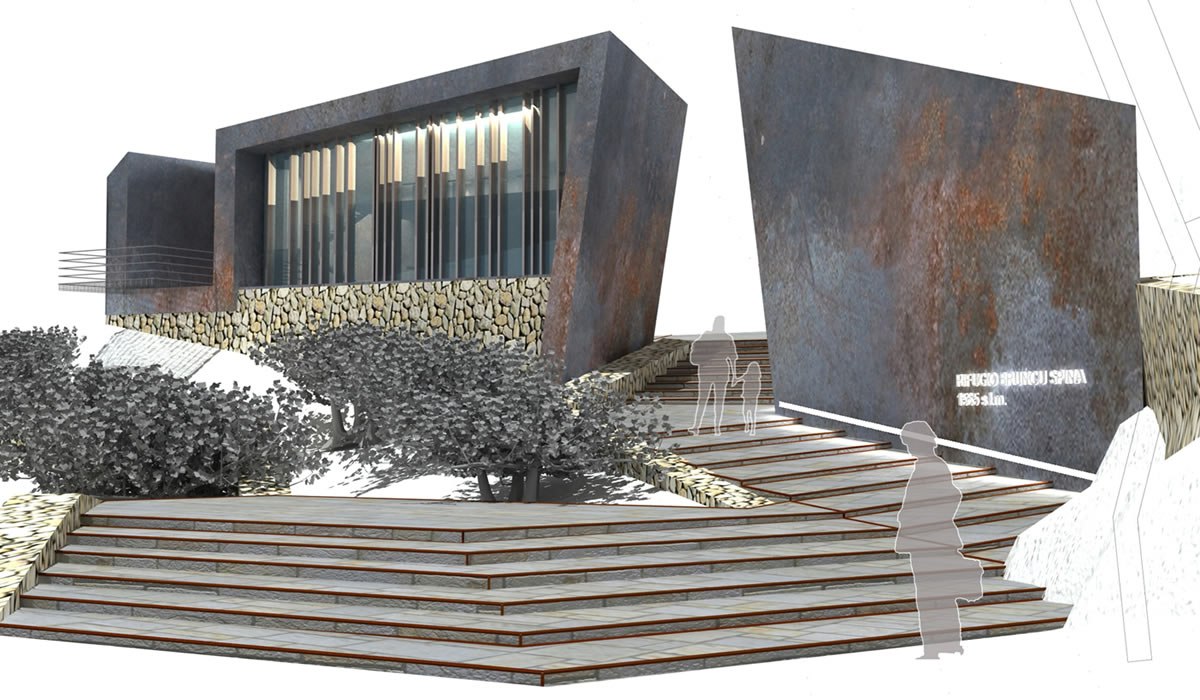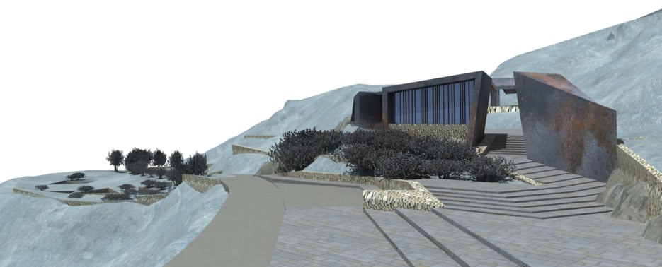 • definizione dei nuovi edifici nell'ottica di un linguaggio contemporaneo, non imitativo di forme vernacolari ma che sa evocare forme archetipiche (la falda, il muro, la strettoia, il sentiero) e naturalistiche (il masso, la faglia, l'elemento scistoso, il torrente) proprie del territorio locale.