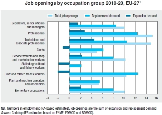 Per "job openings" si intendono i nuovi posti di lavoro che si creeranno in ciascun settore indicato. Questi sono dati dalla somma delle posizioni che si rendono disponibili per un naturale ricambio generazionale e da quelle generate dalla crescita delle aziende. Crescita che determina la creazione di nuovi posti di lavoro.