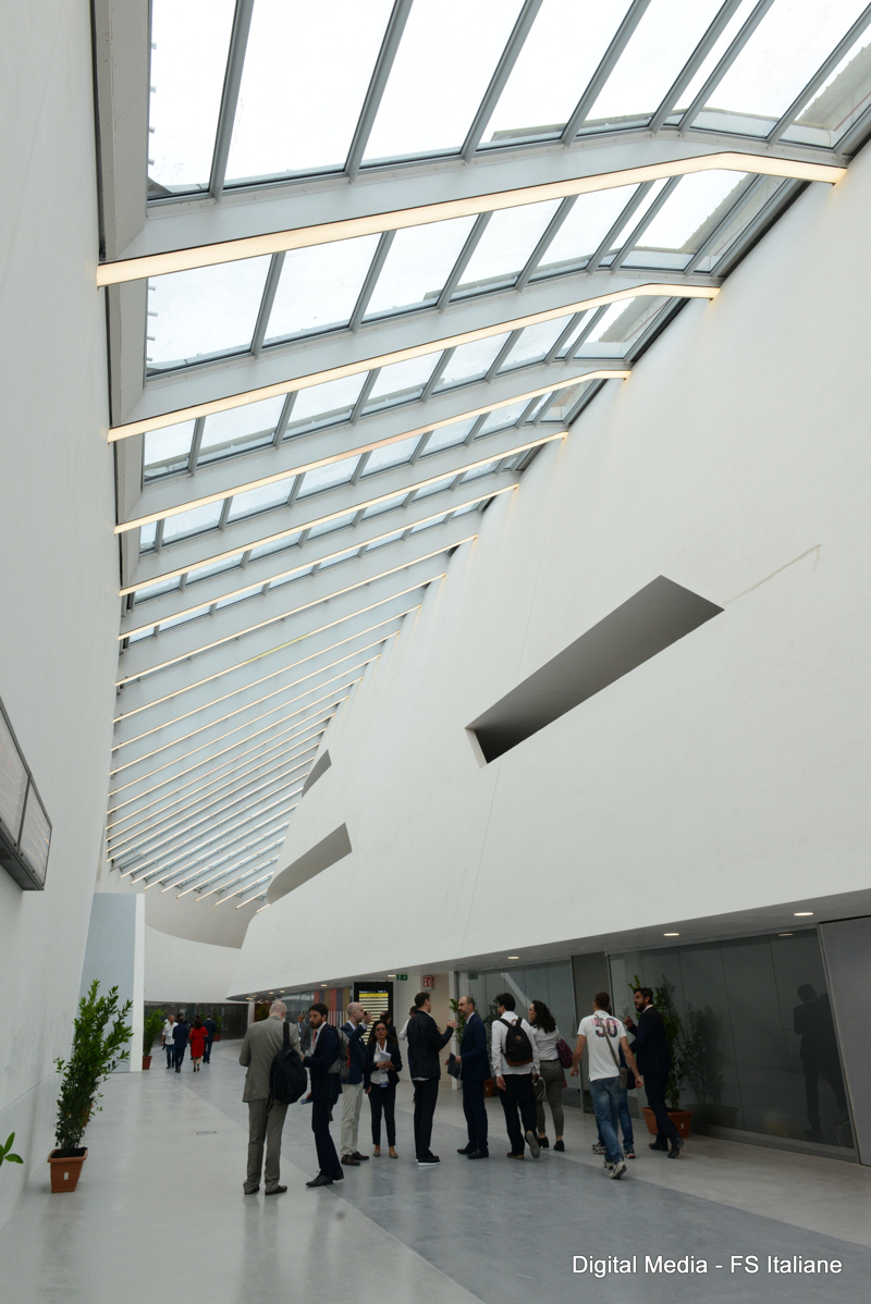 Il corpo centrale della stazione - nata da un concorso internazionale del 2003 - è lungo 400 metri e scavalca i binari come un grande ponte, sviluppandosi su una superficie di 30mila metri quadrati su 4 livelli: il primo dedicato alla circolazione ferroviaria, il secondo ospita biglietterie e servizi per i viaggiatori, il terzo e il quarto livello dedicati i servizi commerciali, che saranno aperti progressivamente.