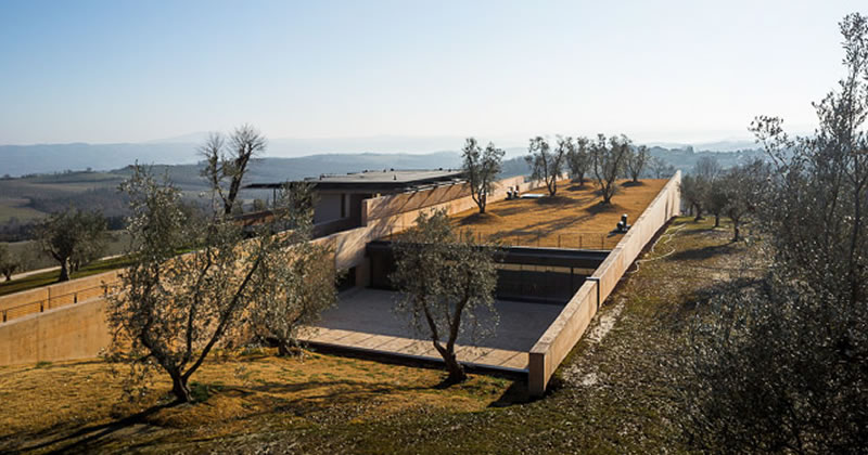 Dopo i già numerosi apprezzamenti, quali quello offerto poche settimane fa da Fassa Bortolo nell'ambito dei progetti selezionati dalla dodicesima edizione dell'International Prize for Sustainable Architecture, la Cantina di Podernuovo, situata a San Casciano dei Bagni, centro medievale a sud est di Siena lungo le colline del Chianti e verso il confine con l'Umbria, spicca ancora una volta per la capacità di intervenire in contesti estremamente delicati con una singolare sensibilità verso l'ambiente e il paesaggio.