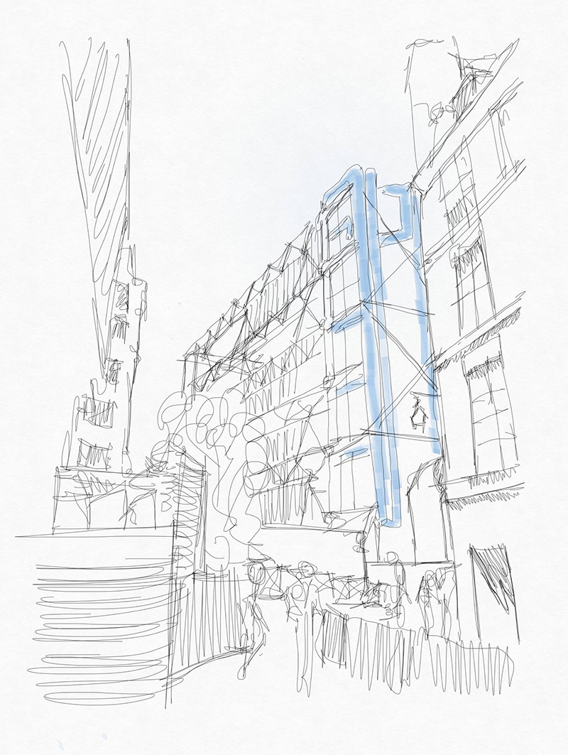 Ed infine Parigi, presso la sede dello studio di Renzo Piano per guardare da vicino schizzi, modelli, e tavole di studio che ricoprono tutte le pareti. Dall'Ecole Centrale Saclay (tutt'ora in costruzione) si torna indietro di 47 anni, alla volta del Centre George Pompidou (Beaubourg).
