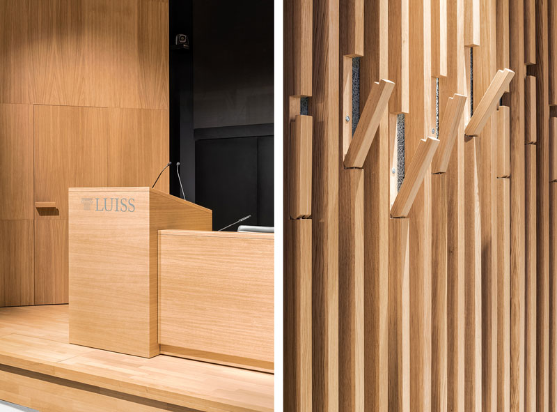 Studio Gemma e Alvisi Kirimoto firmano il nuovo auditorium della storica sede centrale del polo universitario LUISS Guido Carli a Roma. Uno spazio in equilibrato tra texture e contrasti cromatici che ospita al suo interno diversi programmi funzionali.
