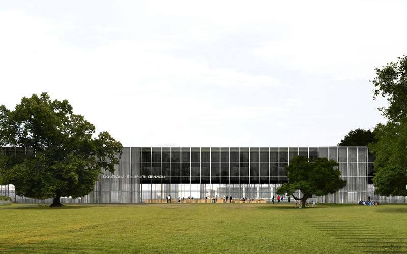 E, da un concorso, seppur più recente (fu indetto nel 2015), nasce anche l'altro museo, in costruzione all'interno di un parco pubblico nella città di Dessau-Roßlau. Come si ricorderà, la competizione internazionale fu vinta dal giovane studio di architettura spagnolo Gonzalez Hinz Zabala. Visto dall'esterno, il museo rimanda immediatamente all'opera di Mies van der Rohe, che diresse anch'egli la scuola: «Può essere considerato come eredità iconografica del motto "less is more"», affermò la giuria. Il bando stimava un costo di 25 milioni, messi sul piatto per metà dal Governo tedesco e per l'altra metà dallo stato della Sassonia-Anhalt.