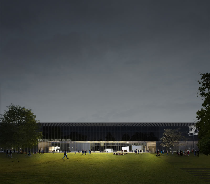 Bauhaus Museum Dessau - vista notturna Stadtpark © design by Gonzalez Hinz Zabala, 2016
