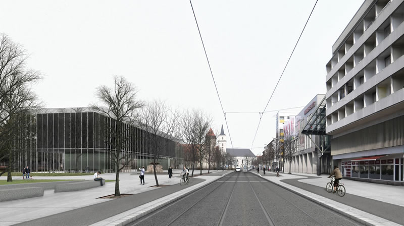 Bauhaus Museum Dessau - vista da Ratsgasse © design by Gonzalez Hinz Zabala, 2016