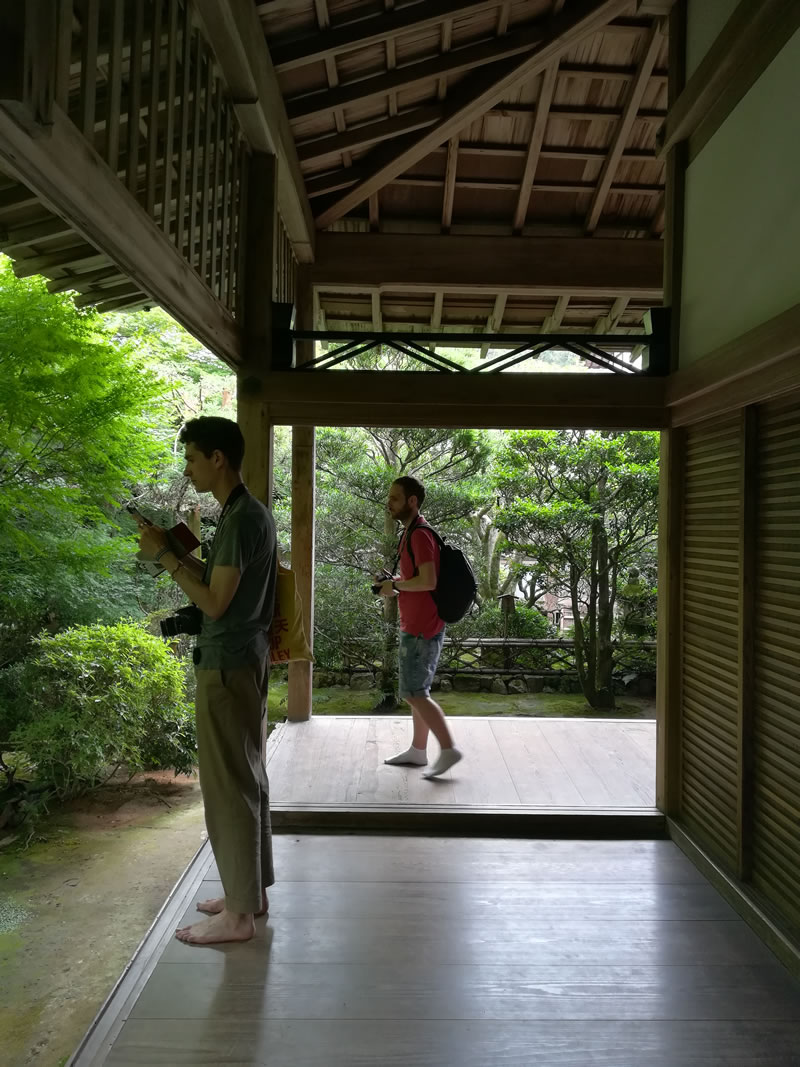 Per Eirinaios, Paul Antoine e Valentina l'arrivo in Giappone inizia con l'atterraggio sullo spettacolare aeroporto "galleggiante" di Kansai, un'isola artificiale nella baia di Osaka progettata da RPBW per resistere ai violenti terremoti della regione. Da qui, con una serie di bus, hanno raggiunto Kyoto, "una città con edifici moderni, con assetti urbani piuttosto rigidi e poi delle incredibili oasi verdi che sono i templi e i giardini".