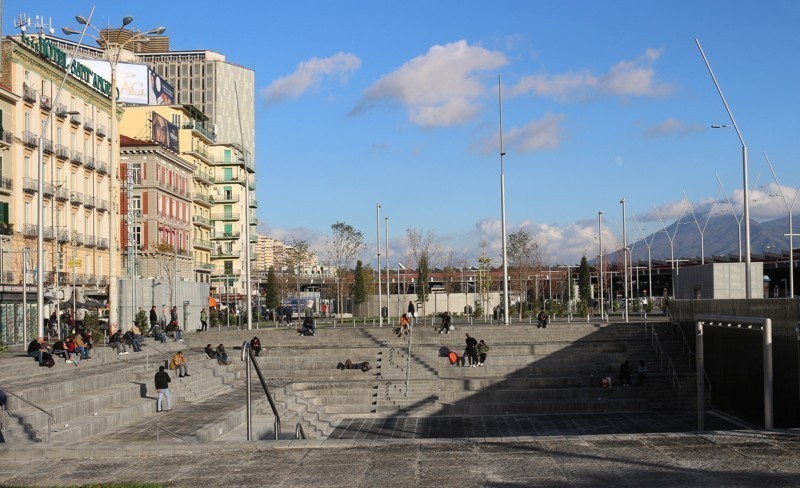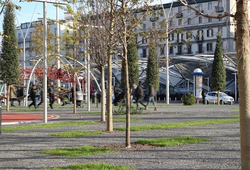 Al progetto nel sottosuolo ne corrisponde un altro: la sistemazione della piazza su cui prospetta la stazione centrale. Una delle piazze più ampie d'Europa. In tutto quasi 60mila metri quadri, che sono stati restituiti alla città lo scorso 29 novembre. Una piazza, una stazione e un importante nodo di interscambio (vi si incrociano due linee della metro, il trasporto nazionale e ferroviario su ferro e l'alta velocità) rinascono dopo un'importante operazione di riqualificazione urbana.