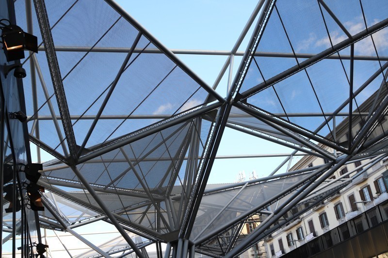 La copertura metallica con "vele" di tessuto di policarbonato forato, disegnata a partire dalla figura del triangolo, si pone in continuità con la storia, andando a prolungare idealmente la copertura dell'attuale stazione, opera che ha visto collaborare grandi nomi, come: Pier Luigi Nervi, Bruno Zevi e Luigi Piccinato.