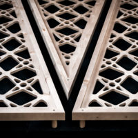 Particolare del "cubo" scuro rivestito con i pannelli intarsiati. Fotografia di © Alex Filz