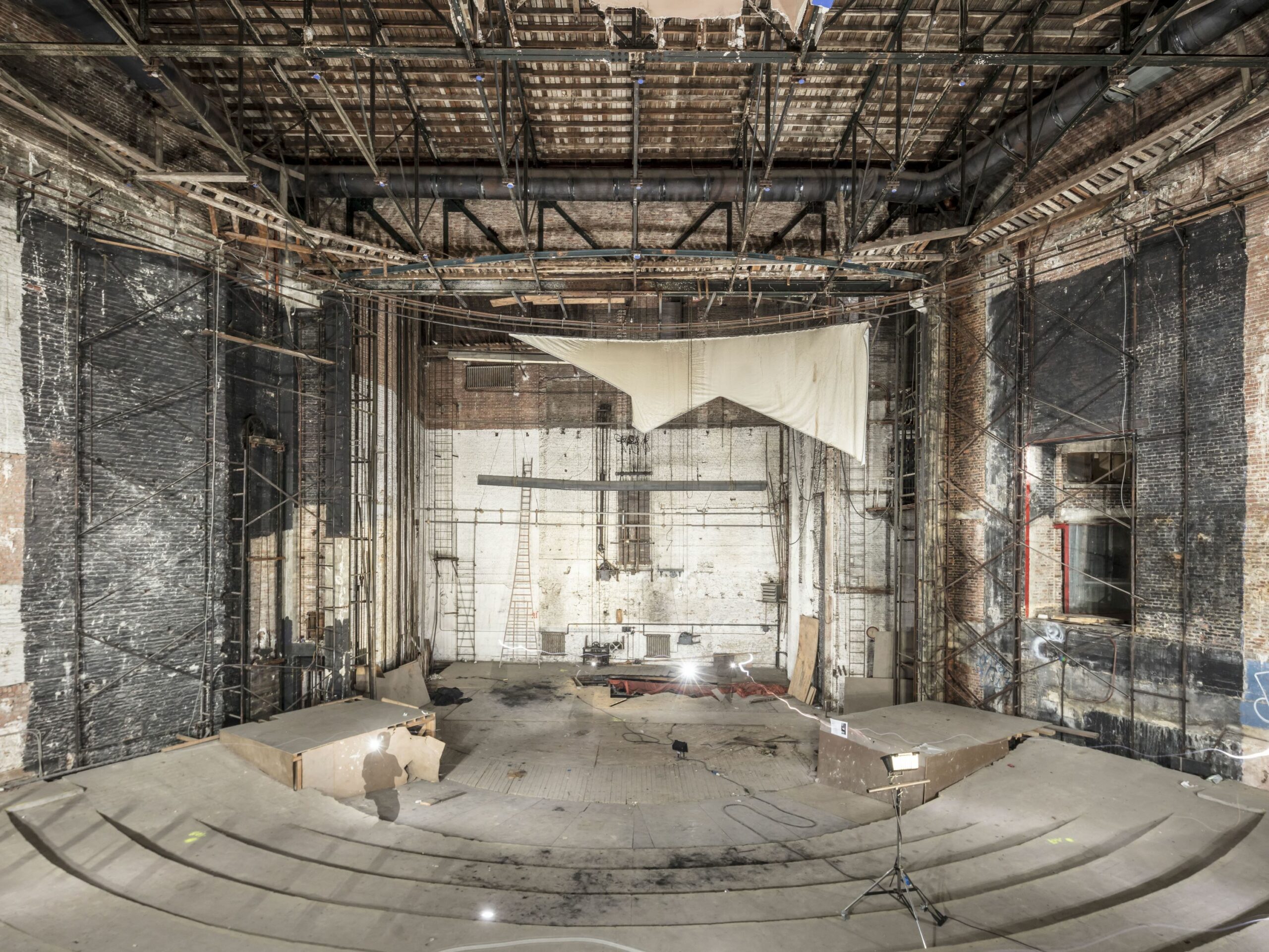 Il punto di partenza quindi è il teatro, con le sue dimensioni e caratteristiche irripetibili, la sua grande altezza e il suggestivo open space con la scala di ingresso, che vengono reinterpretati e adattati alle richieste per la nuova occupazione: uno spazio pubblico aperto e inclusivo per accogliere i dibattiti, spettacoli di arte e musica e per celebrare incontri sociali.