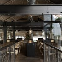 Nella piattaforma sospesa è collocata l'osteria gastronomica, dove sperimentare una cucina d'avanguardia. «Dalla cucina del piano di sopra abbiamo "staccato" una passerella e realizzato una piattaforma vetrata che ospita la sala dell'osteria gastronomica dove ci sono tavoli e sedute. Questa è sostanzialmente appesa a delle travi che abbiamo inserito in aggiunta a quelle esistenti. Abbiamo aggiunto dei profili metallici importanti e vi abbiamo sospeso questo "acquario" che quindi non poggia a terra. È sospeso con profili metallici che da fuori non si vedono perché sono nascosti dal vetro che corre su tutto il perimetro e poi internamente ci sono delle colonne che in realtà non scaricano a terra ma sono appese alle travi metalliche aggiunte», conclude Luca Baldini.