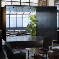 Un ex magazzino tessile milanese, a pochi passi dalla stazione centrale di Milano. Una scatola vuota, ma sufficientemente alta per creare una sala «avvolta da pareti in vetro che appare come un acquario di 60 metri quadrati sospeso nel vuoto». Uno spazio da reinterpretare conservandone il fascino industriale. E poi un foro nel tetto, sfondato in passato, quando l'edificio era in disuso, per farvi entrare una gru a servizio di un vicino cantiere. Questi i dati di partenza per giungere ad una soluzione per niente scontata.