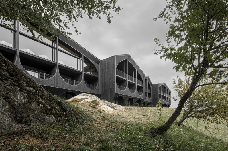 L'hotel - informano allo studio Peter Pichler - è stato inaugurato lo scorso ottobre e nasce da un concorso ad inviti indetto nel 2019. In tutto trenta camere tra i prati ed i campi della Val Pusteria, meta turistica ben nota per i suoi suggestivi percorsi escursionistici.