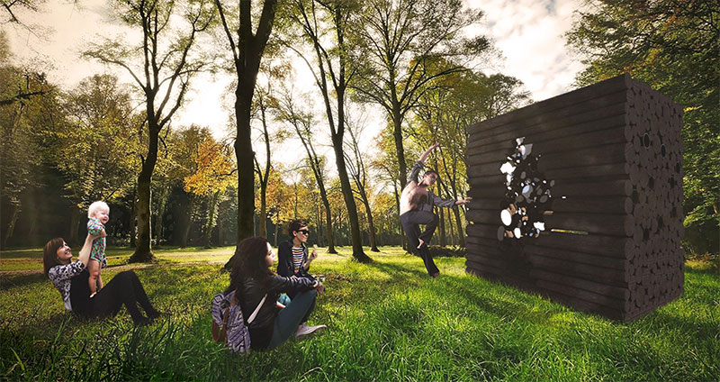 La forza motrice è il vento e lo strumento musicale è l'installazione stessa. Le tessere di diverse essenze avranno una diversa densità e peso specifico, così da emettere suoni differenti. Il legno, deperibile, col tempo tornerà alla terra. L'installazione - è l'idea lanciata dai progettisti - potrebbe essere realizzata nelle foreste a rischio nel mondo, come simbolo per sensibilizzare le coscienze rispetto al tema della preservazione degli ecosistemi forestali.