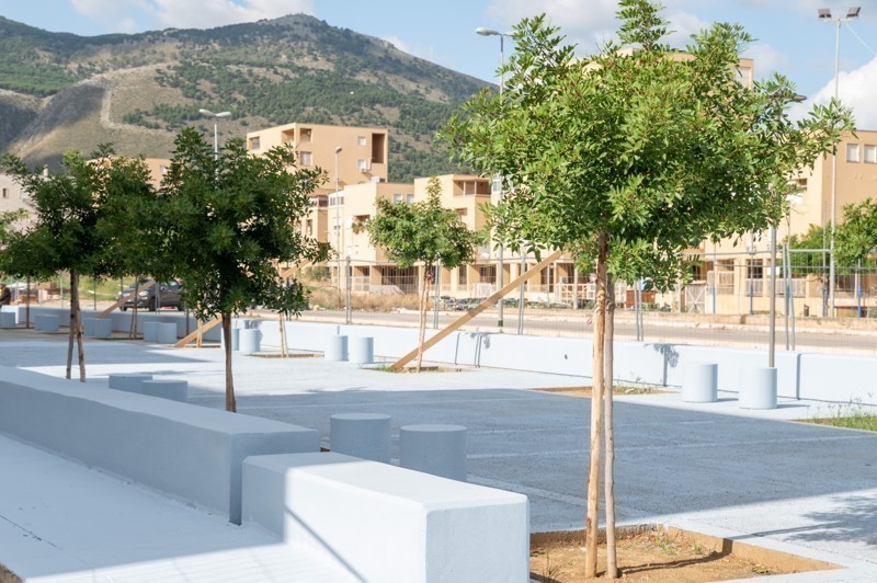 «È nata così una piazza urbana, un luogo di relazione dove la gente può incontrarsi, dunque uno spazio che fino ad ora il quartiere non aveva mai avuto. I giovani sono stati il nostro primo obiettivo fin da subito perché necessitavano di uno spazio dove poter svolgere delle attività nel pomeriggio, anche con le associazioni stesse», aggiunge Marina Viola. «Un piccolo cordolo che delimitava quest'area - continua - è diventato l'occasione per realizzare una seduta, dando vita ad un luogo dedicato alla sosta che, con la piantumazione delle alberature, ci consente di restituire al quartiere uno spazio ombreggiato dove potersi incontrare. Alla punteggiatura delle alberature si alternano delle sedute cilindriche, creando questo vero e proprio spazio di relazione. La realizzazione dell'illuminazione ci permetterà, inoltre, di far vivere questo luogo anche durante le ore serali».