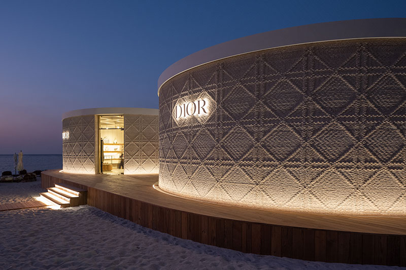 A commissionare l'opera il noto brand Dior, che per il suo concept store ha richiesto un'installazione unica, composta da due moduli circolari per un totale di 80 mq, interamente realizzati dalla combinazione di argilla, sabbia e fibre naturali con il sistema di stampa 3D Crane WASP.