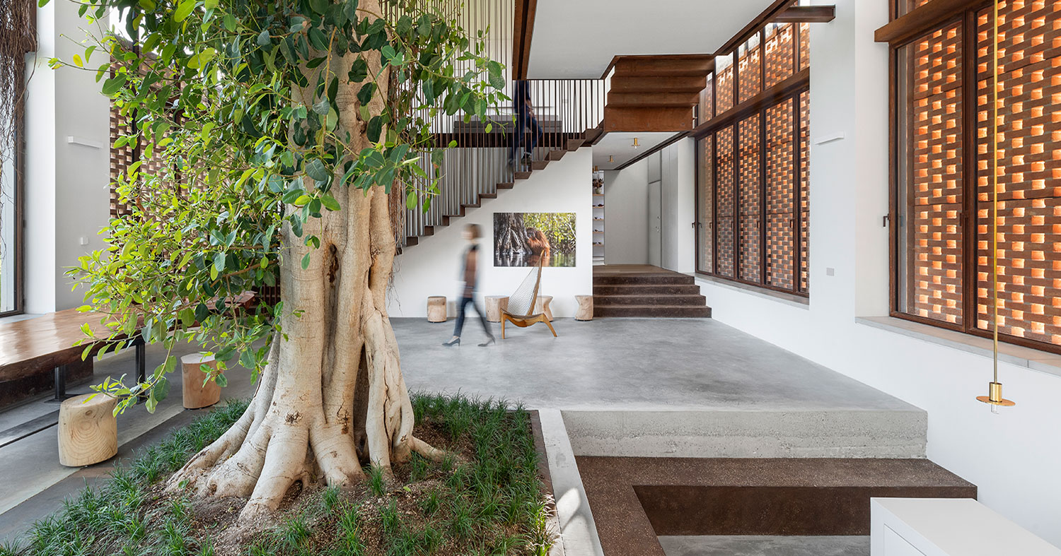 E infatti Greenary - gioco di parole di "granaio verde" - realizzata su un terreno di oltre 2,5 ettari, si sviluppa proprio intorno a un albero di ficus alto dieci metri, che diviene il cuore dello spazio abitativo. Una serie di alloggi circonda i rami frondosi dell'albero fino alla sua cima, abbracciando l'idea di biofilia, secondo cui gli esseri umani condividono il desiderio innato di vivere vicino alla natura.