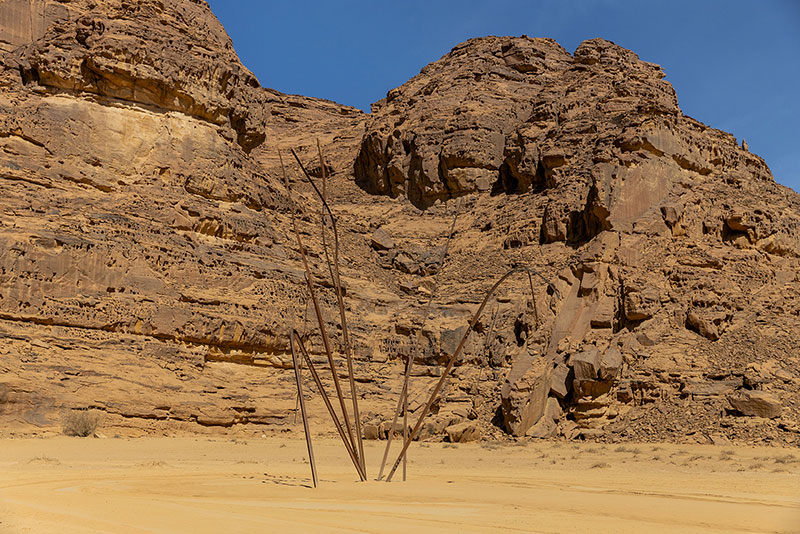 L'esplorazione scultorea della memoria di Monika Sosnowska parla della posizione storica di AlUla come crocevia del commercio e del suo più recente risveglio culturale. Usando le rotaie della ferrovia dell'Hejaz, che andava da Damasco a Medina, le forme lineari in acciaio sono state trasformate in gigantesche erbe secche piene di possibilità di crescita e trasformazione.