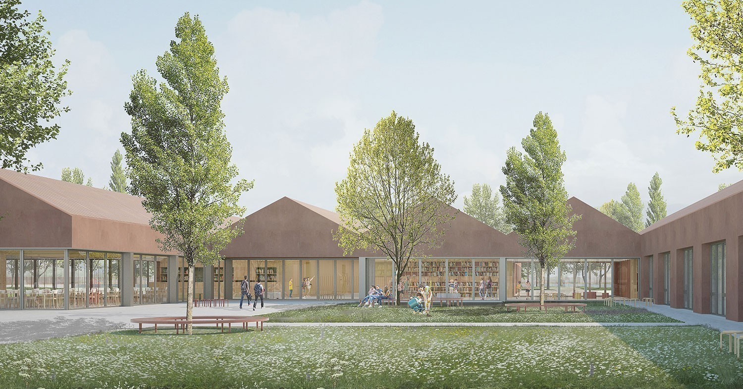Ispirandosi alla dimensione agricola, il progetto reinterpreta la tipologia della serra, sia per lo sviluppo longitudinale che per le tipiche coperture. Allo stesso modo il tracciato delle trame agricole, dei campi e dei filari viene riproposto nel disegno dei percorsi e delle aree esterne, definendo così le zone e il programma del nuovo parco a servizio della scuola e della comunità, fruibile anche fuori dall'orario scolastico.