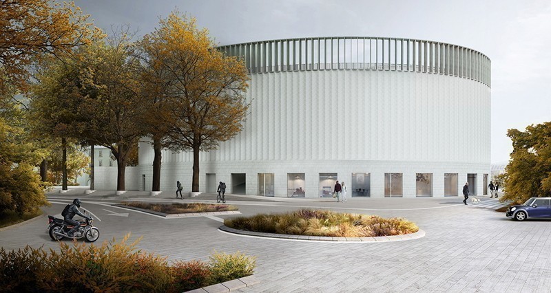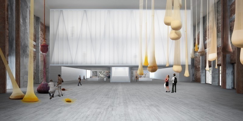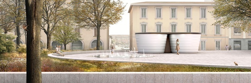 Confermando e ripulendo dai volumi aggiuntivi il contenitore a pianta ellittica e mantenendo la posizione dell'ingresso verso piazzale Oberdan, il progetto trasforma l'attuale avancorpo, ne mantiene il sedime e lo abbassa in altezza in modo da costruire un portale che consente allo spazio pubblico di "fluire" all'interno dell'edificio. Si crea così il foyer del museo, una vera e propria piazza coperta interna a tutta altezza, uno spazio aperto, attraente e in armonia con la nuova piazza esterna, disegnata da sedute, una fontana a giochi d'acqua e dei piccoli gazebo commerciali.