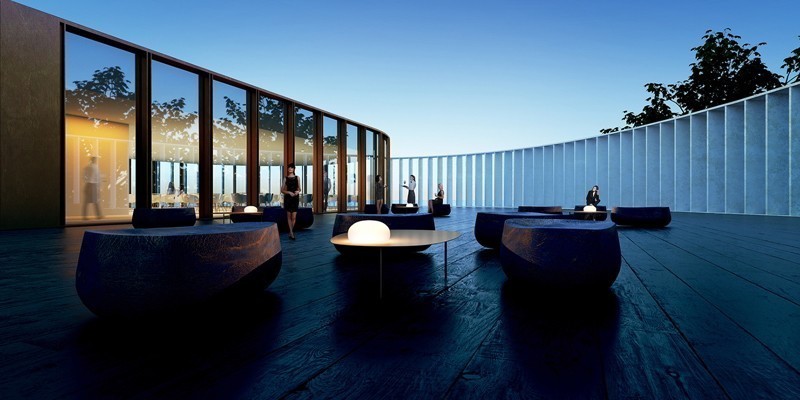 È stato pertanto ricavato un volume leggero che ospita un ristorante panoramico, accessibile dall'esterno anche quando il museo è chiuso. Il nuovo volume segue le linee di confine edificatorio lasciando il resto dello spazio a una terrazza panoramica in copertura. Il nuovo museo rappresenterà, quindi, anche un punto di vista nuovo su Bergamo, grazie a questa terrazza panoramica che dà sui tetti della città ed è la conclusione di questo percorso che si snoda attraverso la memoria dell'edificio, dentro l'arte, e poi finalmente a vedere la città.