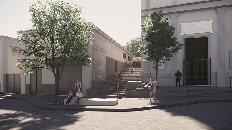 Il progetto punta anche a dare continuità e ad ampliare la fruibilità dello spazio che anticipa l'ingresso alla chiesa contigua al cimitero (la parrocchia di Maria Ss del Carmine attualmente sede di associazioni), annettendovi un'area privata che sarà concessa ad un uso pubblico. Si tratta più nel dettaglio di una risalita verso il verde della collina. Dunque, il G124 lavora per mettere in connessione l'ingresso al cimitero, il sagrato della chiesa e la risalita verso la collina in modo da creare uno spazio pubblico continuo, una piazza accogliente ad uso dei residenti e dei turisti.
