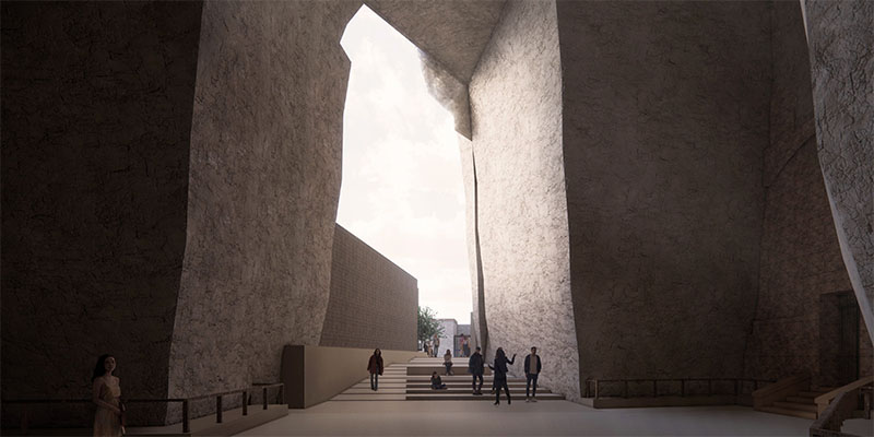 L'obiettivo: lasciare che la forza espressiva della massa tufacea entro cui si svolge il percorso del cimitero possa essere percepita già dall'esterno, così da trasmettere al visitatore che si avvicina al suo ingresso la magia di un luogo di alto valore culturale e antropologico.