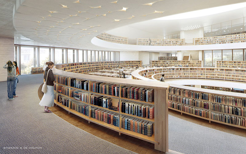 Porta la firma dei norvegesi Snøhetta - a seguito di un concorso internazionale vinto nel 2018 in collaborazione con il partner locale ECADI - la nuova Sub Centre Library di Pechino, uno spazio pubblico contemporaneo per l'apprendimento e la condivisione. Una foresta di conoscenza dove esili colonne simili a tronchi riproducono un paesaggio interno naturale, mosso, scolpito, a simulare una bosco di ginko, in cui ogni colonna è anche una componente tecnologica dell'edificio, incorporando il sistema di climatizzazione, illuminazione, comfort acustico e smaltimento dell'acqua piovana. Tutto qui è aperto, privo di separazioni nette, offrendo una varietà di spazi esperienziali in cui i visitatori possono trovare il loro posto privato pur restando sempre connessi all'area comune più ampia.