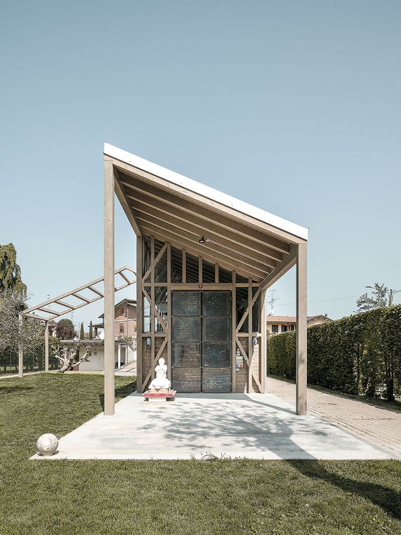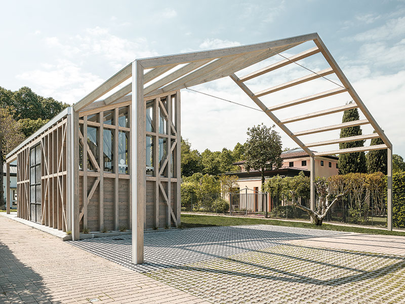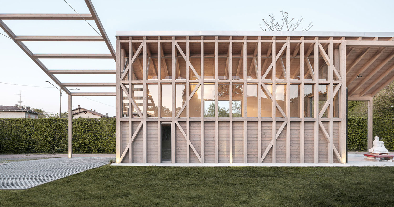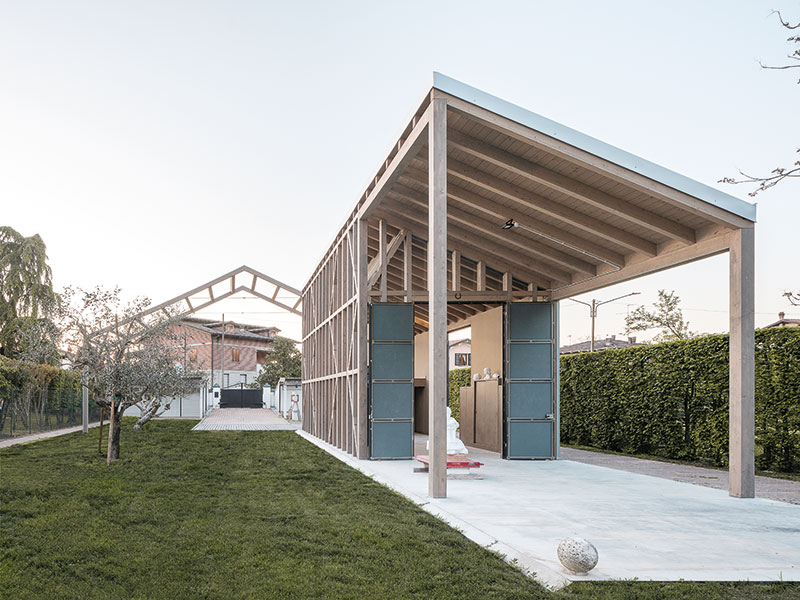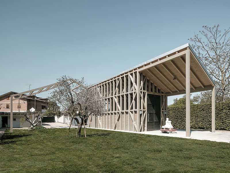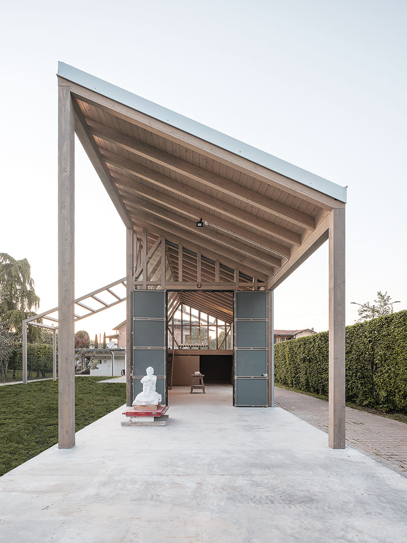 Le esigenze espresse da uno scultore danno quindi vita a un'architettura - a sua volta scultorea - realizzata interamante in legno, in linea con la visione di Christian Gasparini, fondatore di NAT Office, che vede l'architettura "come un medium tra natura e tecnologia", indagando le potenzialità delle strutture modulari per dare forma a nuove relazioni tra uomo e persone.