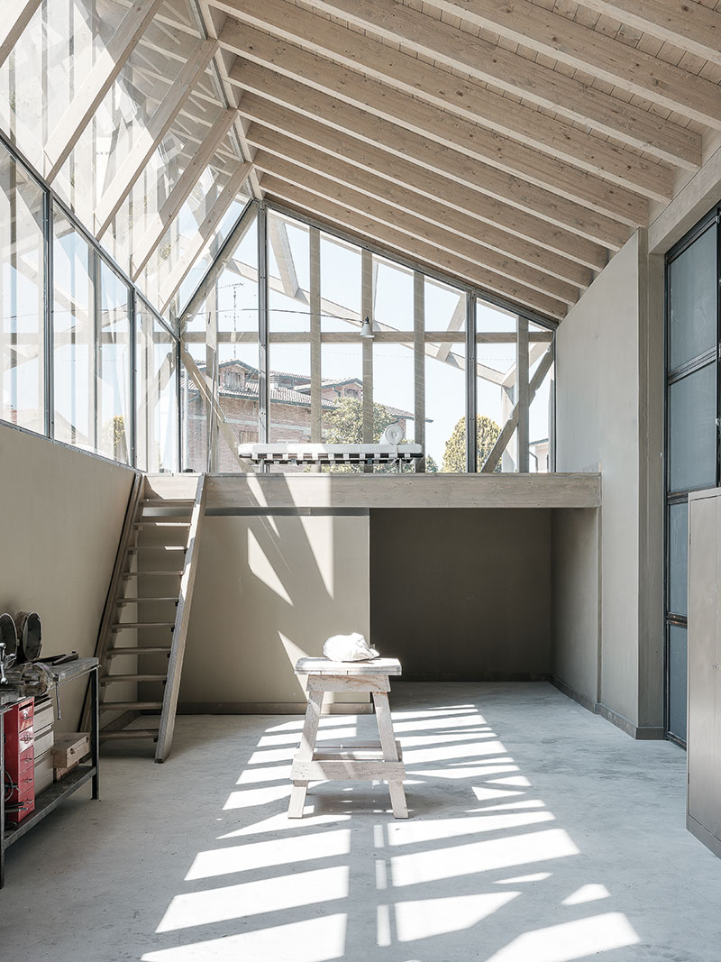 Se trasliamo lo stesso principio nell'ambito dell'architettura, ecco che appare chiaro il concept del progetto di NAT Office per l'artista Michelangelo Galliani - scultore e docente all'Accademia di Belle Arti di Urbino - pensato come atelier e deposito attrezzi e come spazio aperto alle contaminazioni, da condividere con colleghi e altri artisti.