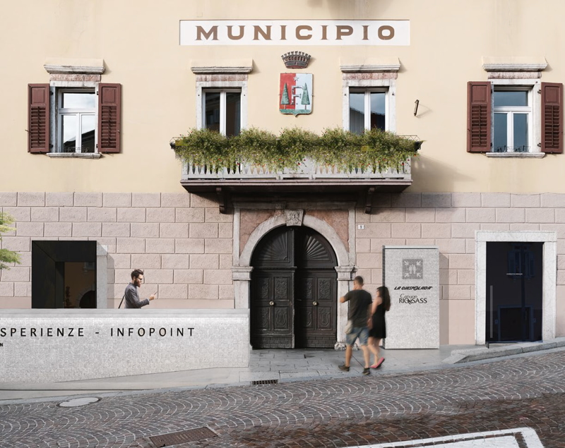 Valorizzare il piano terra e il cortile interno del municipio inserito in un palazzo storico di Borgo d'Anaunia (Trento), per creare spazi per l'informazione, l'accoglienza turistica e la promozione del territorio. Era questo l'obiettivo della competizione, che chiedeva ai partecipanti anche di disegnare l'allestimento e l'arredo degli spazi, curando, inoltre, la comunicazione grafica per permettere la riconoscibilità e l'orientamento all'interno del centro esperienze.