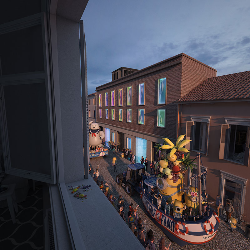 Il risultato è una nuova macchina architettonica caratterizzata da un forte dinamismo spaziale con regole imposte dalla volontà di far conoscere l'anima del Carnevale in maniera immersiva, come se ci si trovasse dentro un carro allegorico.