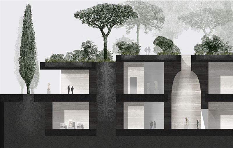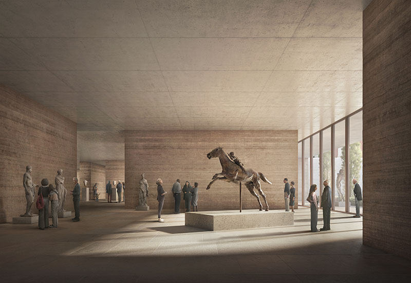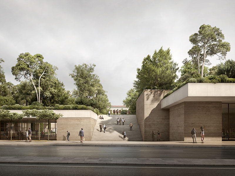 Al volume dell'ampliamento spetterà il compito di ospitare le principali funzioni pubbliche del museo - biglietteria, negozio, ristorante, auditorium e spazi espositivi permanenti e temporanei - organizzati simmetricamente nel rispetto dell'architettura storica. Riecheggiando l'antico ideale greco dell'agorà, il giardino pensile del museo sarà, invece, un tranquillo spazio pubblico sopra la vivace città, dedicato ai momenti di aggregazione.