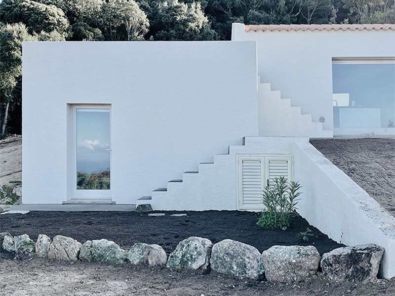 "Sono proprio i vuoti che occorre costruire, essendo aria e luce i materiali di costruzione" - sosteneva Albini, parole che sembrano risuonare nell'intero progetto, dove la natura incontaminata, l'azzurro del mare sullo sfondo e la roccia granitica dominano l'area.