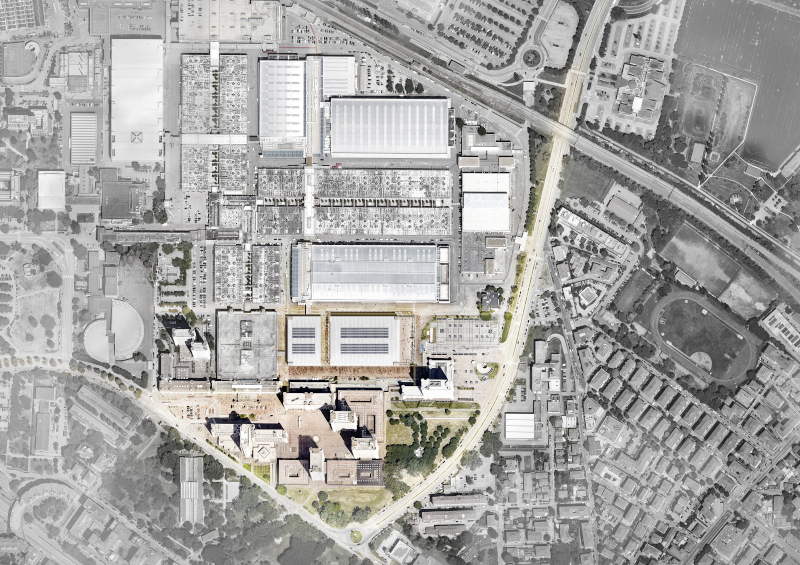 Vista da via della Fiera, render © Mca Mario Cucinella Architects
