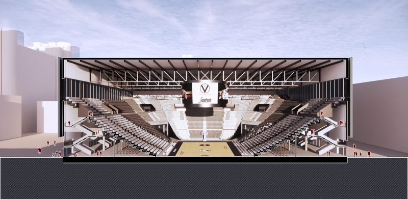 «Nella progettazione delle tribune le gradinate sono state avvicinate il più possibile all'area di gioco, per migliorare l'esperienza degli spettatori. A supporto di questo aspetto è stato tenuto conto delle linee guida internazionali e dei requisiti specifici della disciplina della pallacanestro rispettando i valori di visibilità imposti da Fiba e Eurolega. Il progetto dell'arena prevede la possibilità di implementare il catino di spazi prestigiosi quali postazioni esclusive e sky box. Ricalcando inoltre le arene contemporanee europee e americane, lo sviluppo del progetto porrà particolare attenzione agli spazi riservati a pannelli e visori destinati alla grafica, a scenografie e alle comunicazioni pubblicitarie, integrando l'intervento senza interferire con la visibilità del pubblico».