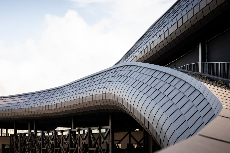 La nuova copertura «si estende per una lunghezza di 300 metri su una superficie di 4.900 metri quadrati e nella parte centrale raggiunge un'altezza di 18 metri», fa sapere lo studio in una nota. «La struttura è stata realizzata in cemento armato nella parte di nuova costruzione, mentre dove si appoggia all'edificio preesistente si è adottato un sistema di travi d'acciaio e legno. È rivestita da scandole metalliche che, come una seconda pelle, seguono perfettamente le curvature e le ondulazioni della copertura».