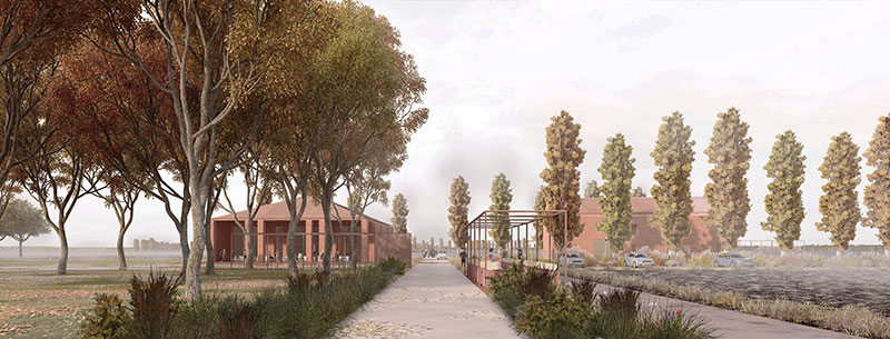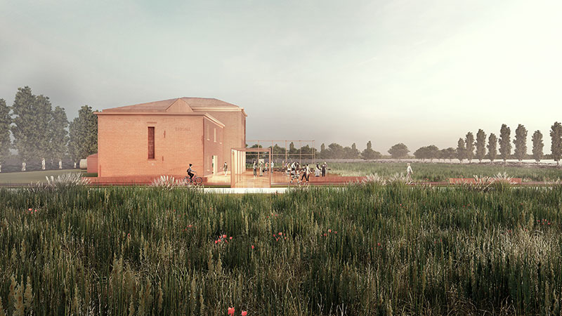 Partendo proprio dalla storia del territorio, dalle sue presenze ambientali (il fiume Po, le paludi e i boschi che ne hanno orientato la gestione) e dagli attori principali che nei secoli hanno definito l'assetto della città, il progetto di QB Atelier allude alle "Delizie", cioè la costellazione di Palazzi, Ville e Giardini opera del Ducato Estense. Si trattava di innovativi luoghi di riposo per la corte, nonché presidi di contatto tra il Duca e la produzione agroalimentare dei suoi terreni, punti di forza culturale del Rinascimento Ferrarese.