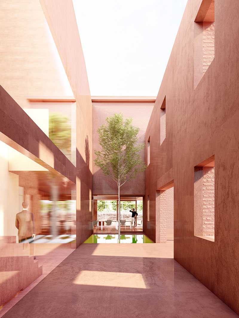 Si viene così a realizzare un edificio nell'edificio che dialoga con il tempo senza rinunciare alla sua contemporaneità e una sequenza di spazi che suggerisce al fruitore un continuo dialogo tra interno ed esterno tramite aperture e creazioni di giardini segreti racchiusi dalle mura domestiche.