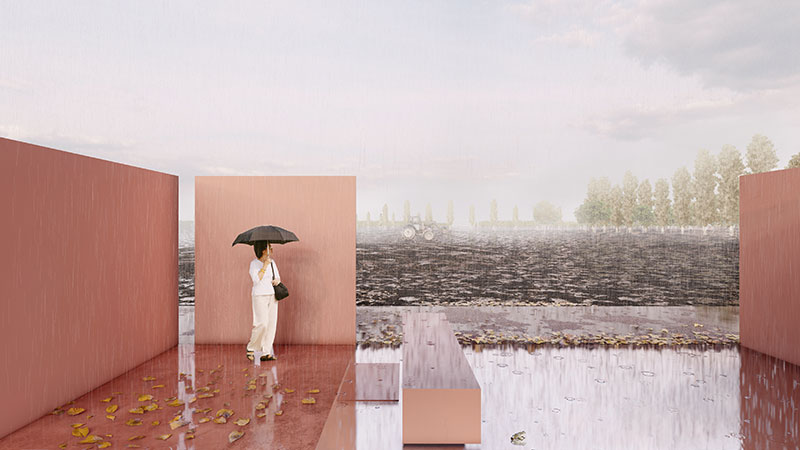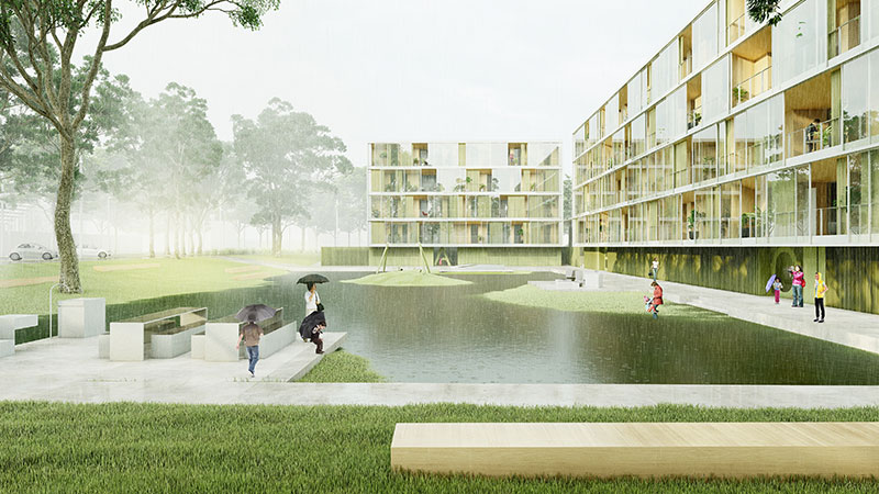 "Si tratta di una piazza verde ribassata che funge da grande vasca di laminazione, che caratterizza lo spazio centrale e si definisce come dispositivo capace di interagire con gli eventi atmosferici e le stagioni, ridisegnando lo spazio fruibile e quello percepito al variare delle condizioni ambientali" - spiegano i progettisti.