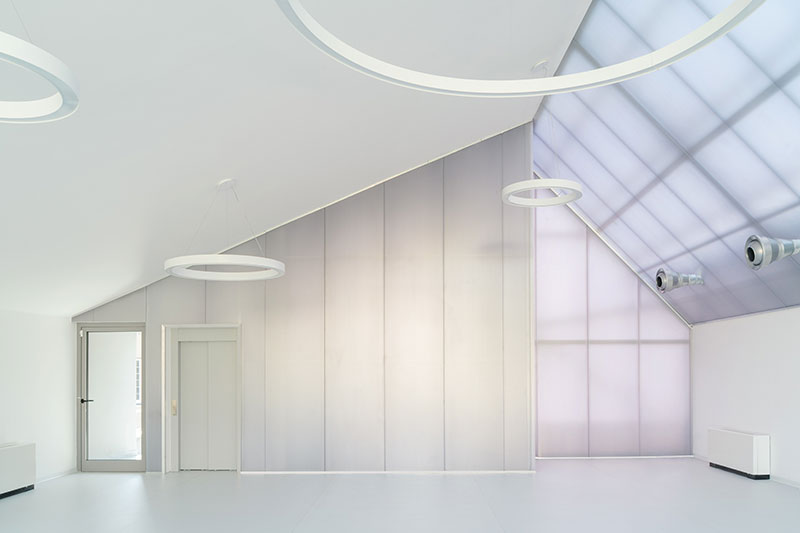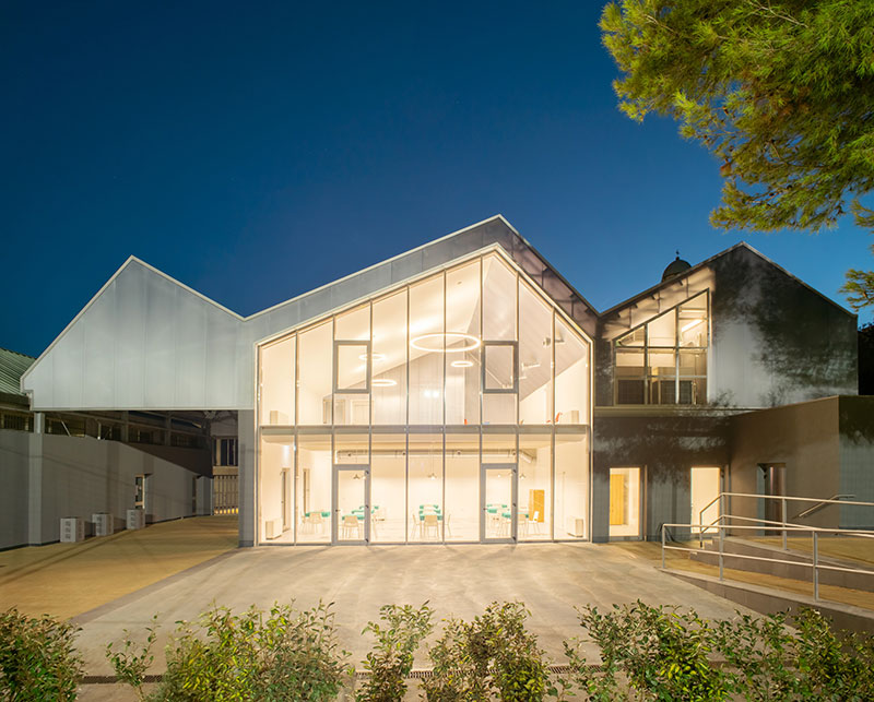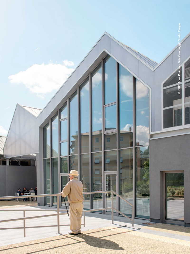 Una progettazione complessiva che ha messo mano anche agli spazi esterni, ridefinendo accessi e fruibilità generale dell'area, con la presenza di un albero di Ginkgo biloba che, simbolicamente, indica un ulteriore ambito di incontro e di relazione.