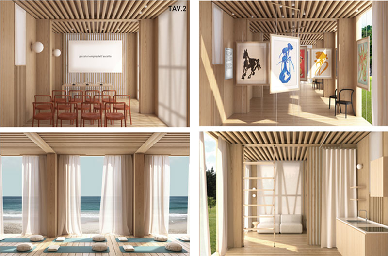Pensato appositamente per lo scenario naturale della Sardegna, il progetto vuole infatti creare il massimo contatto tra uomo e ambiente, sia da un punto di vista sensoriale che materiale, ponendosi come struttura perfetta per lo svolgimento di attività legate al benessere fisico della persona.