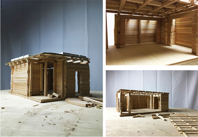 Anche Veronica Pesenti Rossi, con il suo progetto "la Veduta Kit" gioca su semplicità e modularità, mettendo in bella vista il sistema Blackhaus di Rubner Haus definito dall'incrocio di elementi lignei che dichiarano apertamente la regola costruttiva.