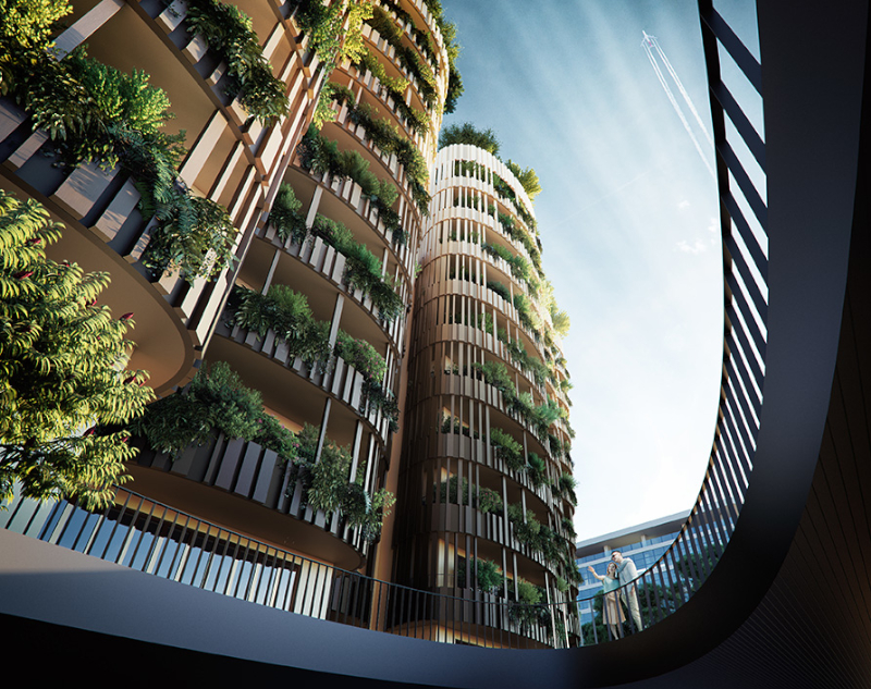 «L'edificio, che si sviluppa su 12 livelli fuori terra - fa sapere lo studio MC A in una nota -, viene concepito come una sorta di "foresta abitata", un accostamento di steli e tronchi di altezze diverse; la frammentazione del volume, i giochi di convessità dei profili, le tensioni cromatiche generano un manufatto che ricorda una corteccia. Il progetto sin dalle prime fasi si è orientato verso l'utilizzo - per quanto possibile - di sistemi costruttivi a secco, allineandosi alla visione secondo la quale gli edifici contemporanei, per non gravare ulteriormente sul patrimonio edilizio, debbano essere parzialmente o completamente smontabili o riadattabili a diversi usi e funzioni, il tutto con il minor impatto sull'ambiente.
