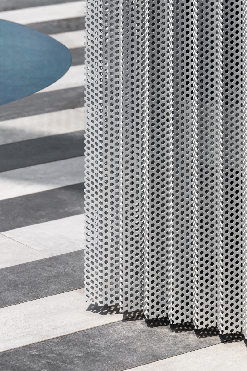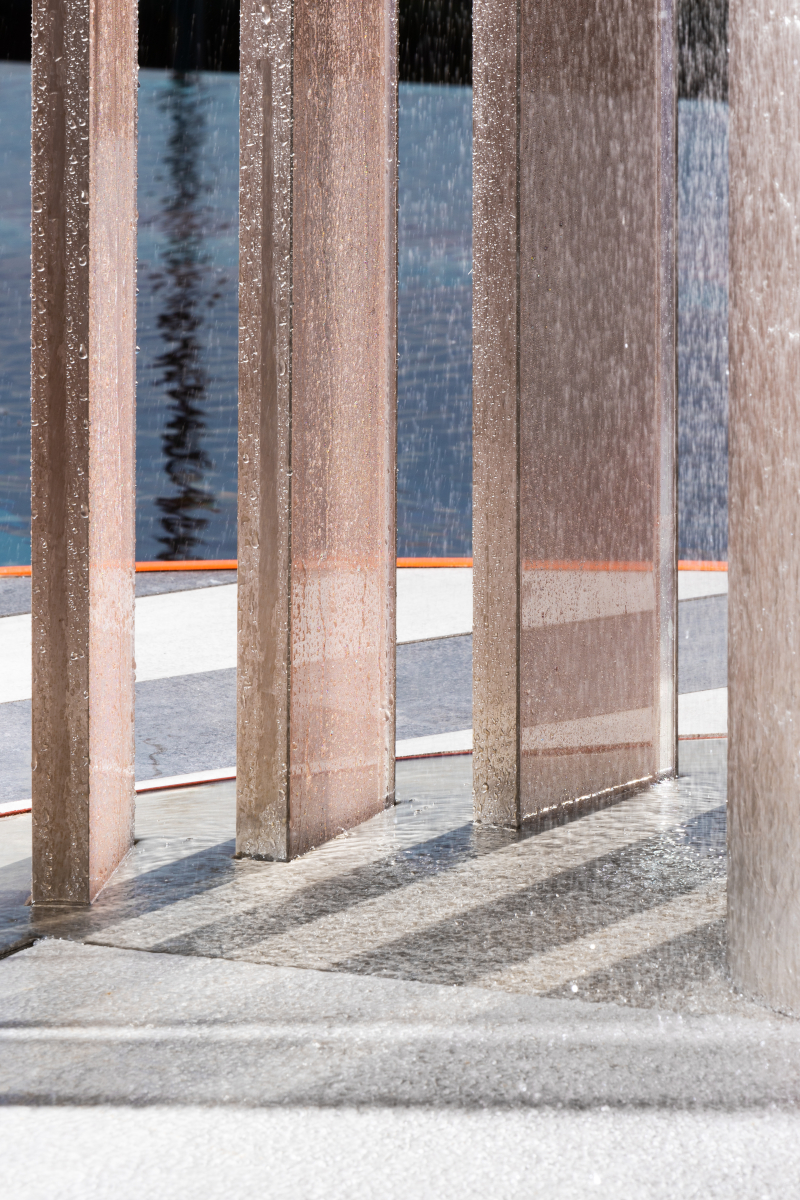 Il racconto fotografico dello studio Delfino Sisto Legnani (DSL Studio), con una forte impronta artistica, propone una chiave di lettura delle caratteristiche più significative del progetto: le riflessioni e le trasparenze dell'acqua e dei materiali, le cromie accese e quelle più pacate delle texture delle superfici, le forme circolari e le geometrie scansite da linee parallele.