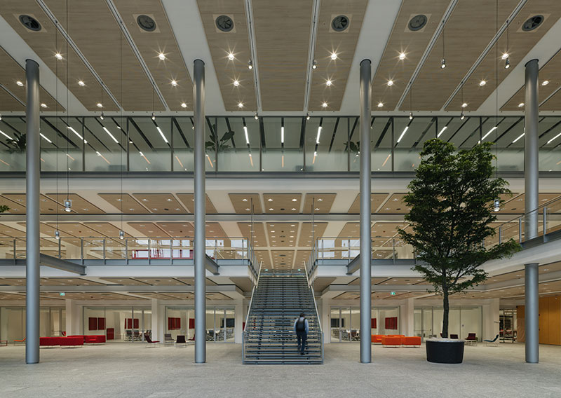 Ad enfatizzare il rapporto interno/esterno, inoltre, sono le ampie facciate vetrate che, oltre a far entrare la luce naturale per la salute psicofisica dei dipendenti, accoglie il paesaggio nella struttura. Un accorgimento, questo, strettamente legato ai principi di sostenibilità che hanno guidato l'intervento, con l'utilizzo di sofisticate tecnologie utilizzate per implementare i sistemi di gestione e ridurre il consumo energetico.
