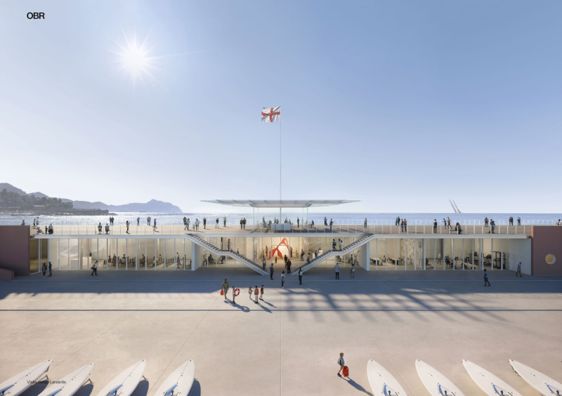 L'intervento prevede la demolizione di un manufatto esistente che lascerà il posto ad un'architettura trasparente e parte integrante di una nuova passeggiata sul mare.