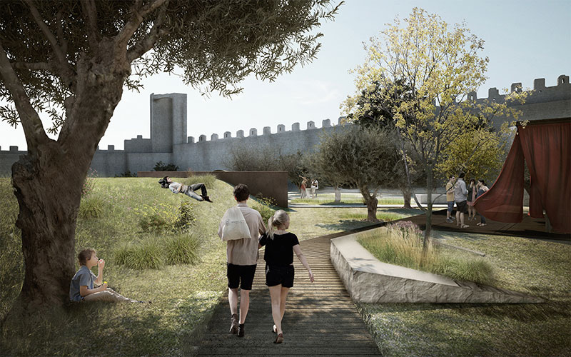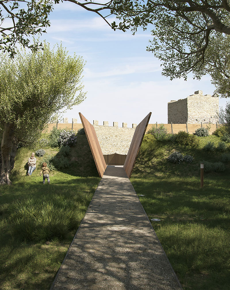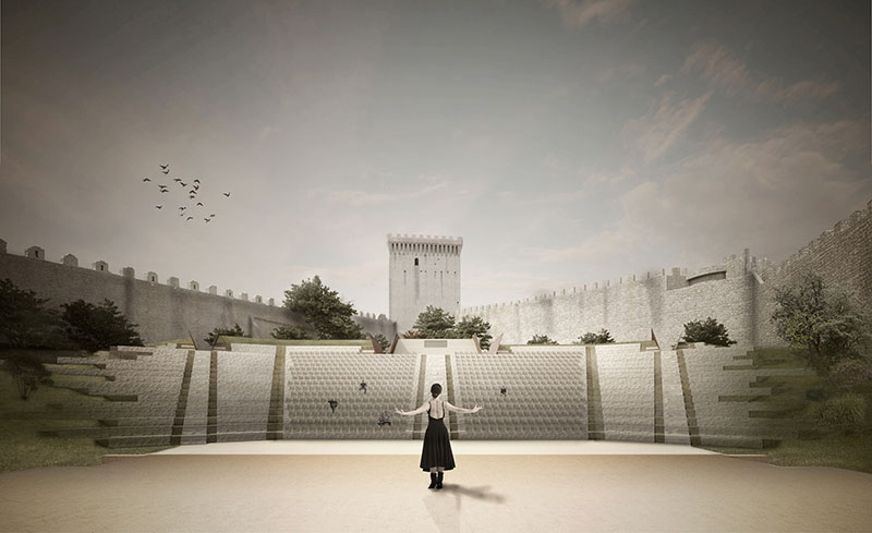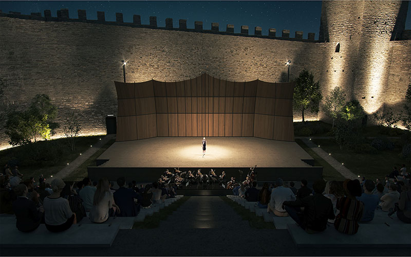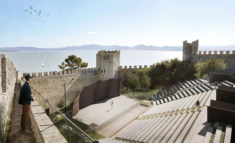 Un intervento silenzioso e rispettoso dell'ambiente, mosso dalla volontà di reinterpretare il luogo adattandolo alle nuove funzioni espresse dall'amministrazione comunale di Castiglione del Lago, il piccolo borgo in provincia di Perugia che, vedendone le potenzialità di arena per spettacoli pubblici, aveva bandito lo scorso marzo un concorso di progettazione.