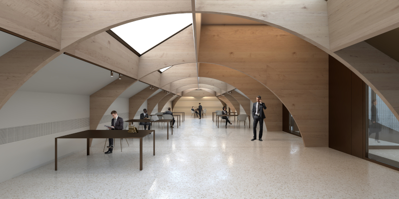 «Il riconoscimento della qualità spaziale e costruttiva del complesso ci ha spinto a realizzare un lavoro di riqualificazione dell'edificio esistente - spiega Cappai - innestando una nuova infrastruttura delicata capace di tradurre e reinterpretare il complesso per adeguarlo al nuovo programma». «La filosofia del progetto - prosegue - mira a preservare il più possibile le strutture esistenti. Il piano terra è stato progettato come uno spazio ibrido, che possa essere aperto anche a un pubblico più ampio (previo controllo di sicurezza all'ingresso) per favorire l'idea che gli edifici pubblici sono edifici di comunità e dovrebbero ospitare un piano terreno accogliente e vivibile».
